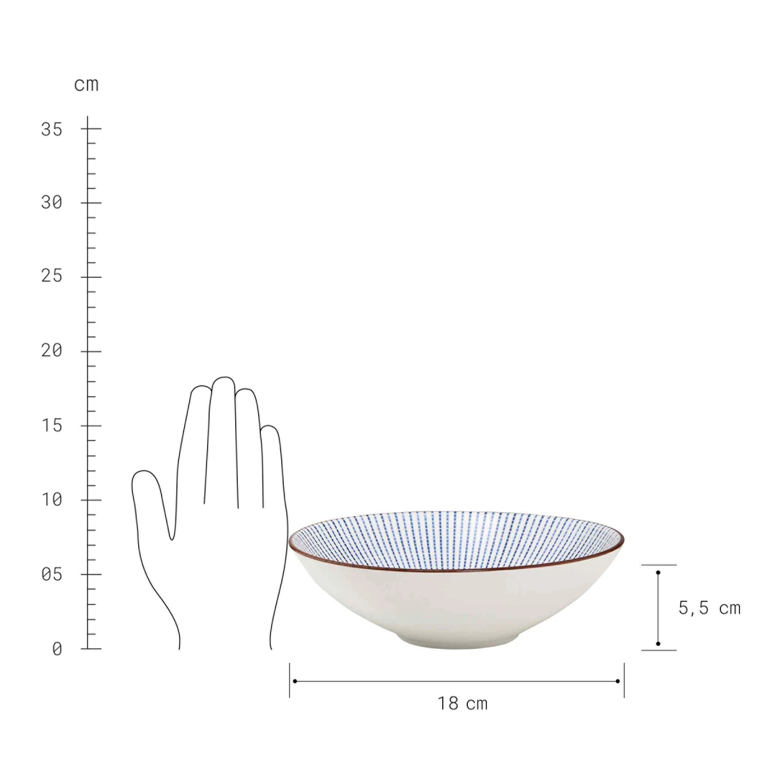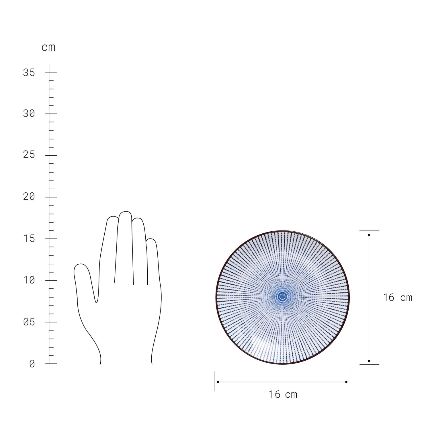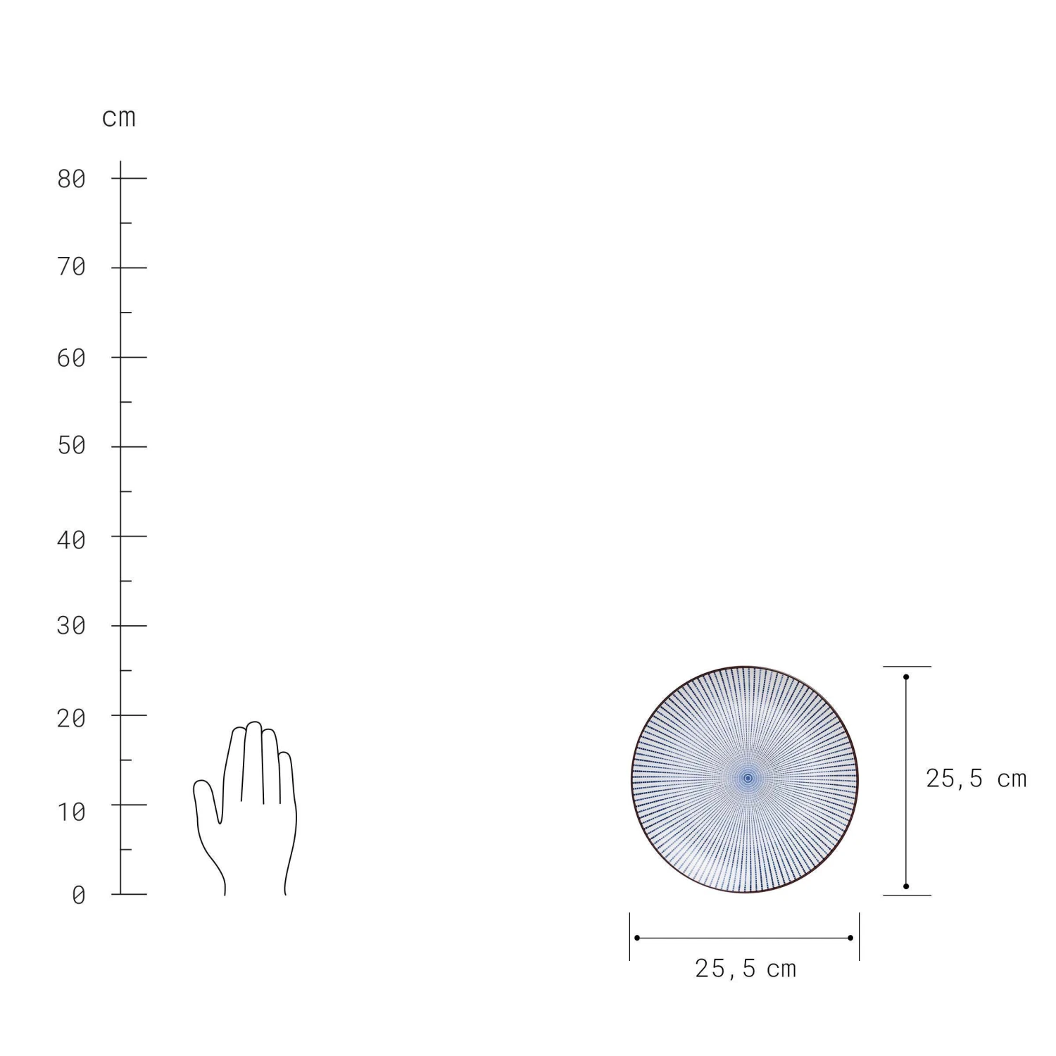 großer Teller: Ø 25,5 cm, Höhe 3 cm, kleiner Teller: Ø 16 cm, Höhe 2 cm, Servierschale: Ø 18 cm, Höhe 5,5 cm, Füllmenge: 420 ml