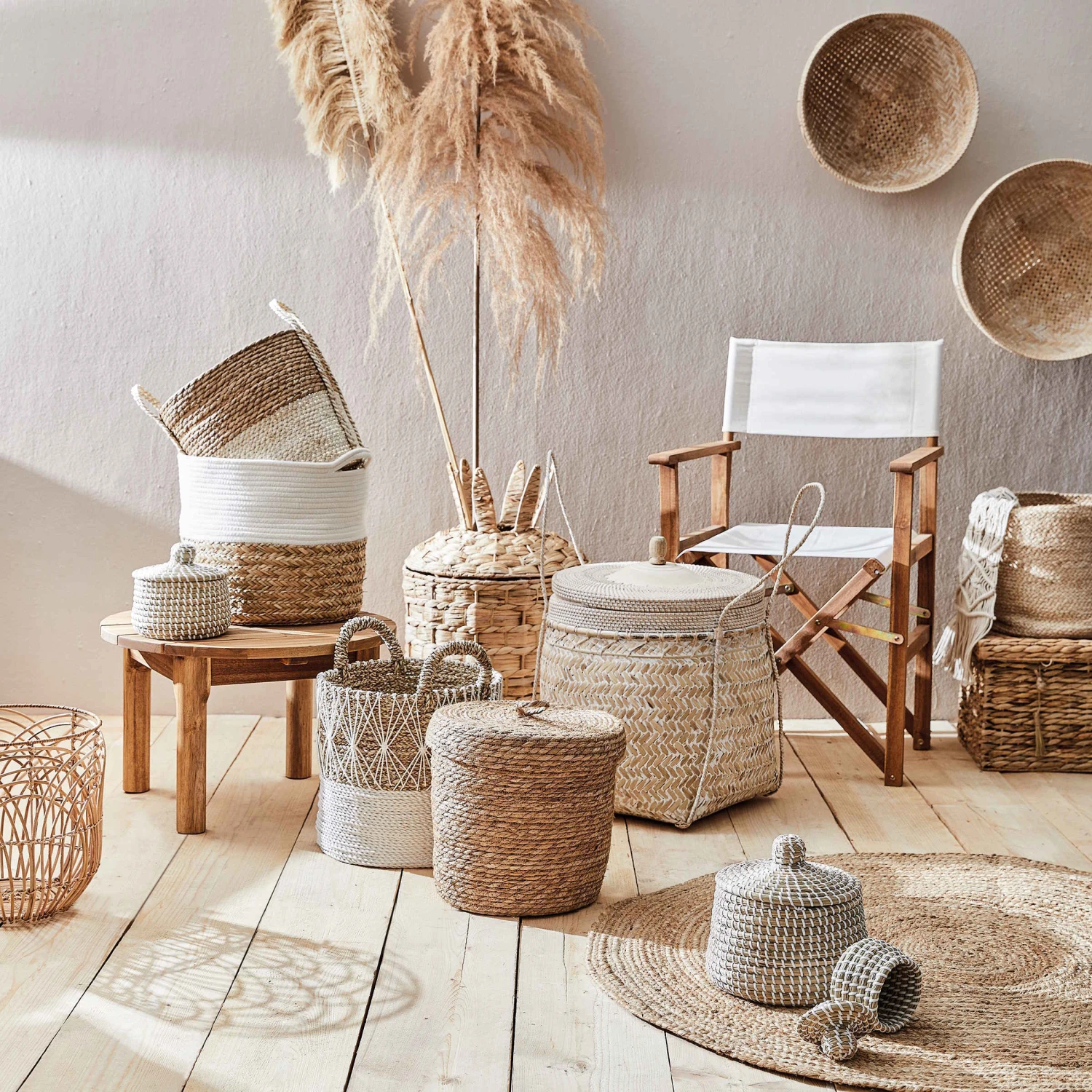 Der geflochtene runde Rush Rope Korb aus Seegras mit Deckel ist überall in Ihrem Zuhause zur Stelle, wo dies und das sonst kreuz und quer herumliegen würde. Weitere Varianten erhältlich.